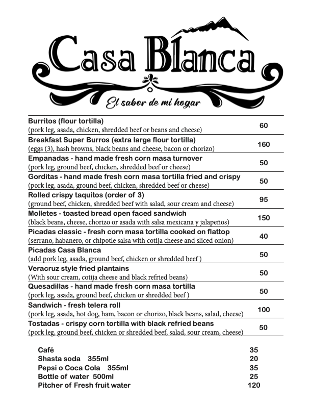 We will make a custom menu as you desire, we specialize in fresh Mexican and Italian food.